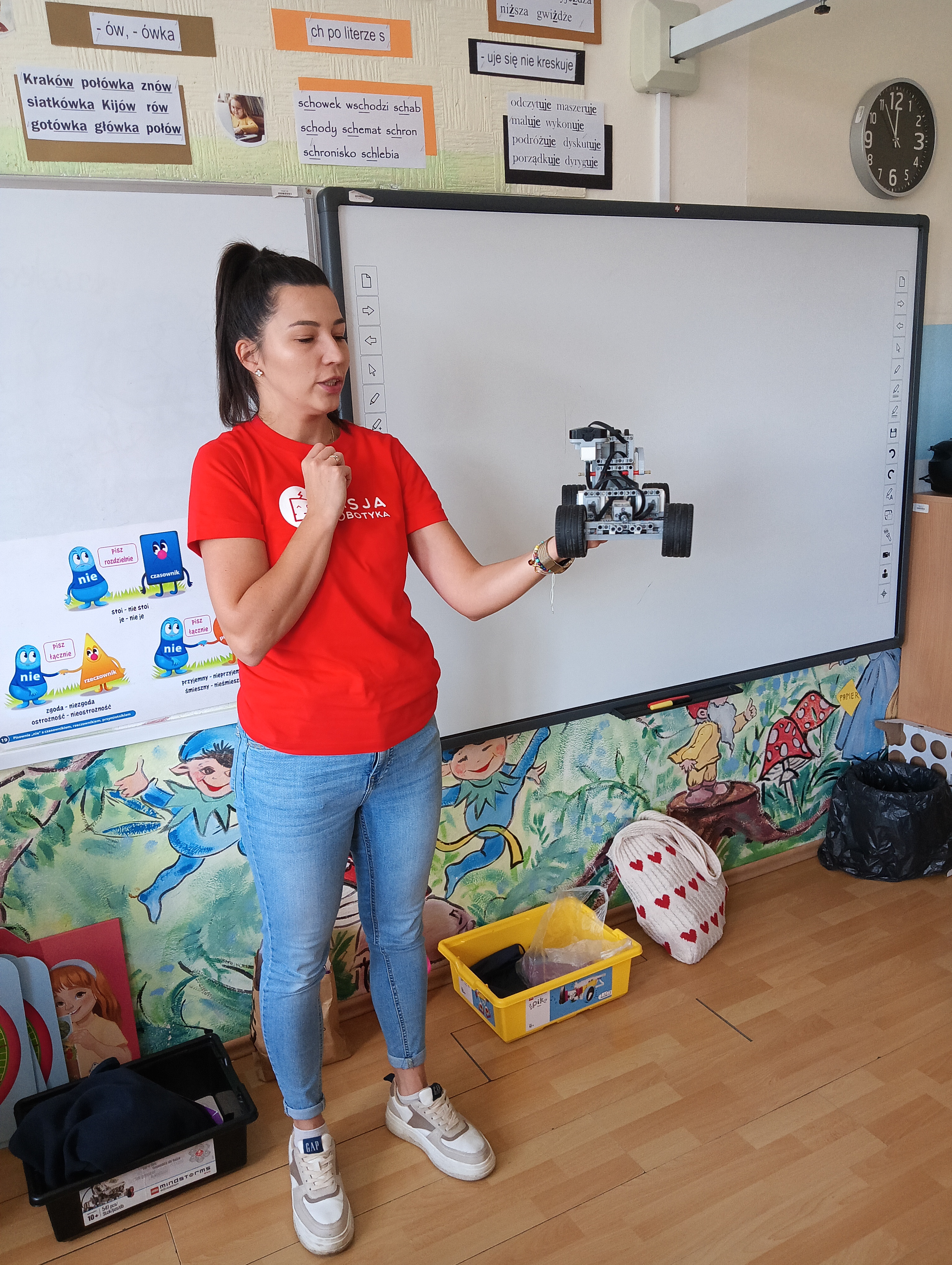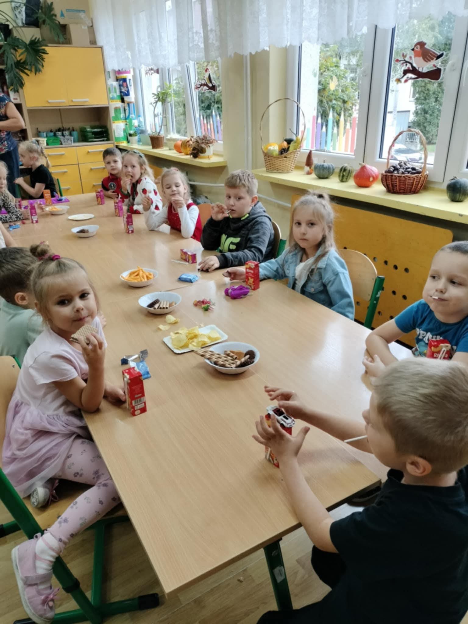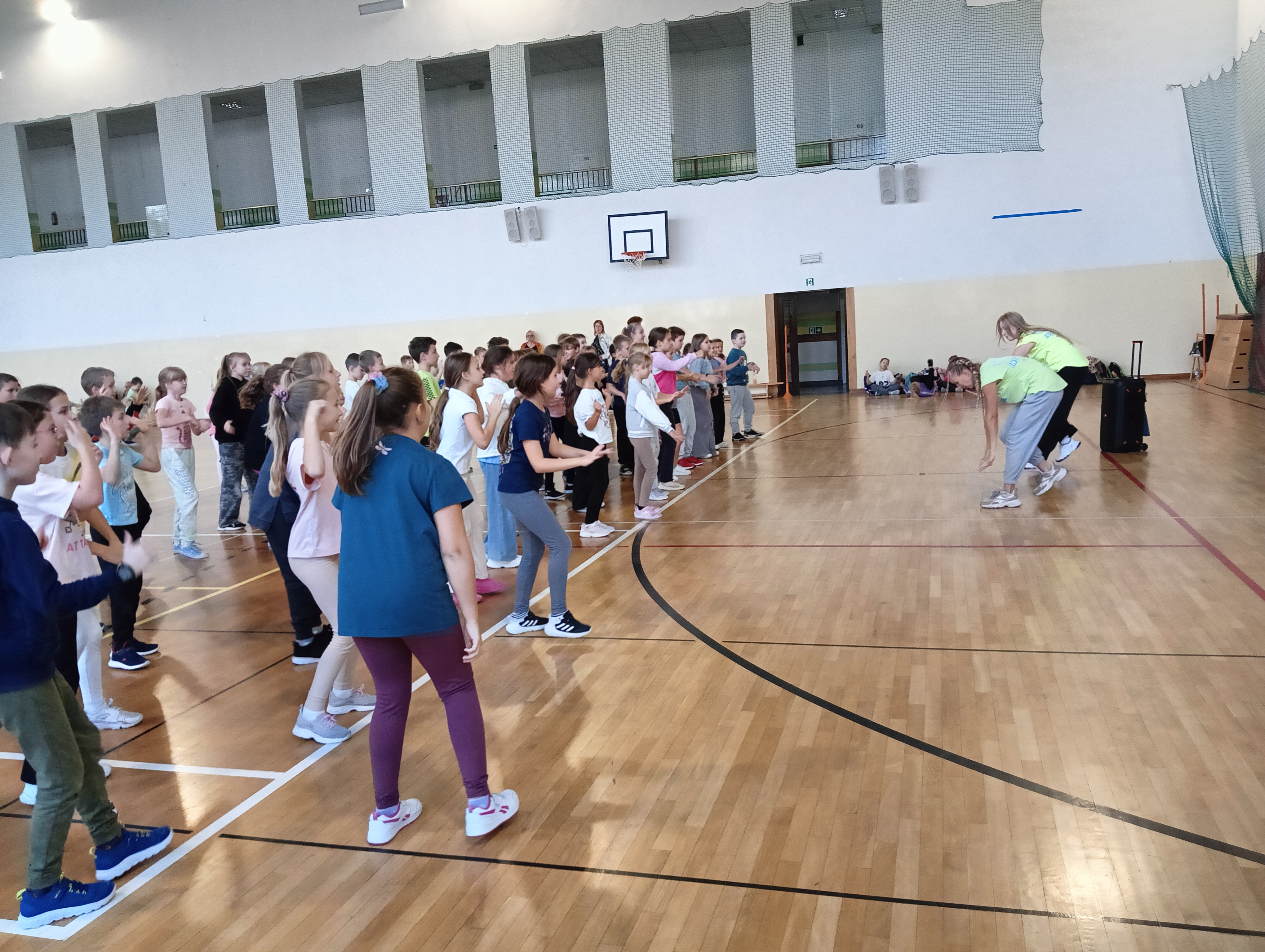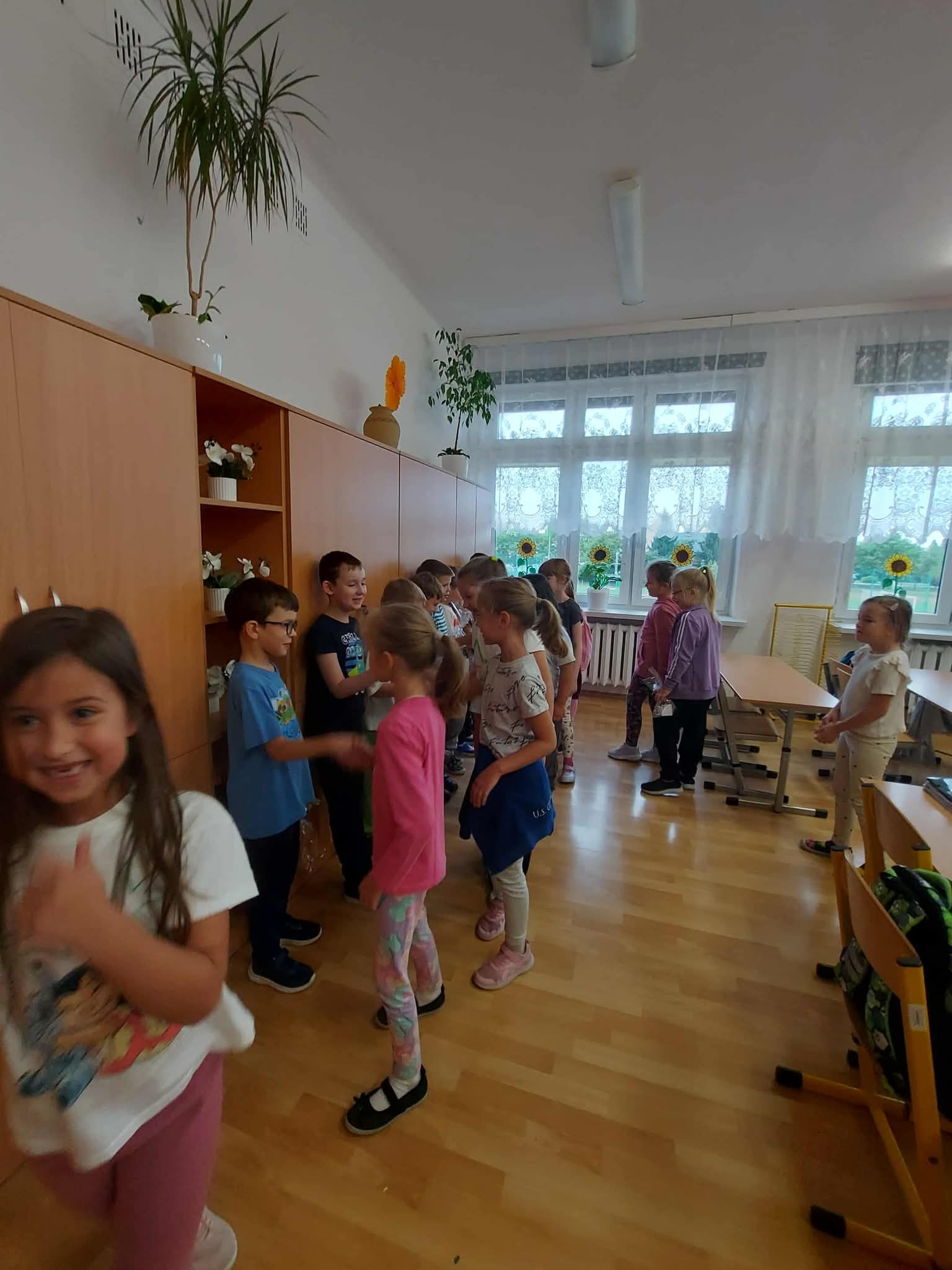 Tego dnia uczniowie zaprezentowali przedstawienie ,,Poplątane bajki”, w którym wystąpiły postacie znane dzieciom z najpopularniejszych baśni, takich jak: ,,Królewna Śnieżka”, ,,Kopciuszek”, czy ,,Czerwony Kapturek”, ale w nieco innej, dość humorystycznej odsłonie. Uczniowie zaprosili również wszystkie dzieci do wspólnej, ruchowej zabawy przy piosenkach bajkowych. Następnie odbył się przegląd piosenek bajkowych, przygotowanych przez wszystkich uczniów z danej klasy lub przez przedstawicieli klas. Mogliśmy usłyszeć: Kacpra Bojarczuka wraz z klasą 0A w piosence ,,Nigdy nie ulegnę, Gabrielę Leonarcik z klasą 0C w piosence ,,Czekam i czekam”, Amelię Kalicką z klasą 1A w piosence ,,Meluzyna”, Maksymiliana Harasima z kl. 1E w piosence ,,Tabaluga”, klasę 2 A w piosence ,,Pół kroku stąd”, Magdalenę Piotrowską z kl. 3C w piosence ,,Na Wyspach Bergamutach”, klasę 3 F w piosence ,,Podróż do Krainy Bajek” Dianę Brzezińską z kl. 1C w piosence ,,Pokemon”, Maję Dymowską w piosence ,,Barbi”, klasę 2B w piosence ,,Gumisie”, Bartłomieja Jarockiego z kl. 3A w piosence ,,Kaczka Dziwaczka”, Polę Majchrowską z kl. 3G w piosence ,,Chwytam wiatr”, Zofię Sadowską z kl. 3H w piosence ,,Pół kroku stąd” oraz Jakuba Wiercińskiego z klasy 3E w piosence ,,Pół kroku stąd”. Niektórzy wykonawcy przygotowali również ciekawą choreografię i oryginalny kostium. Wszystkim uczestnikom pani dyrektor Katarzyna Sierpotowska wręczyła pamiątkowe dyplomy.