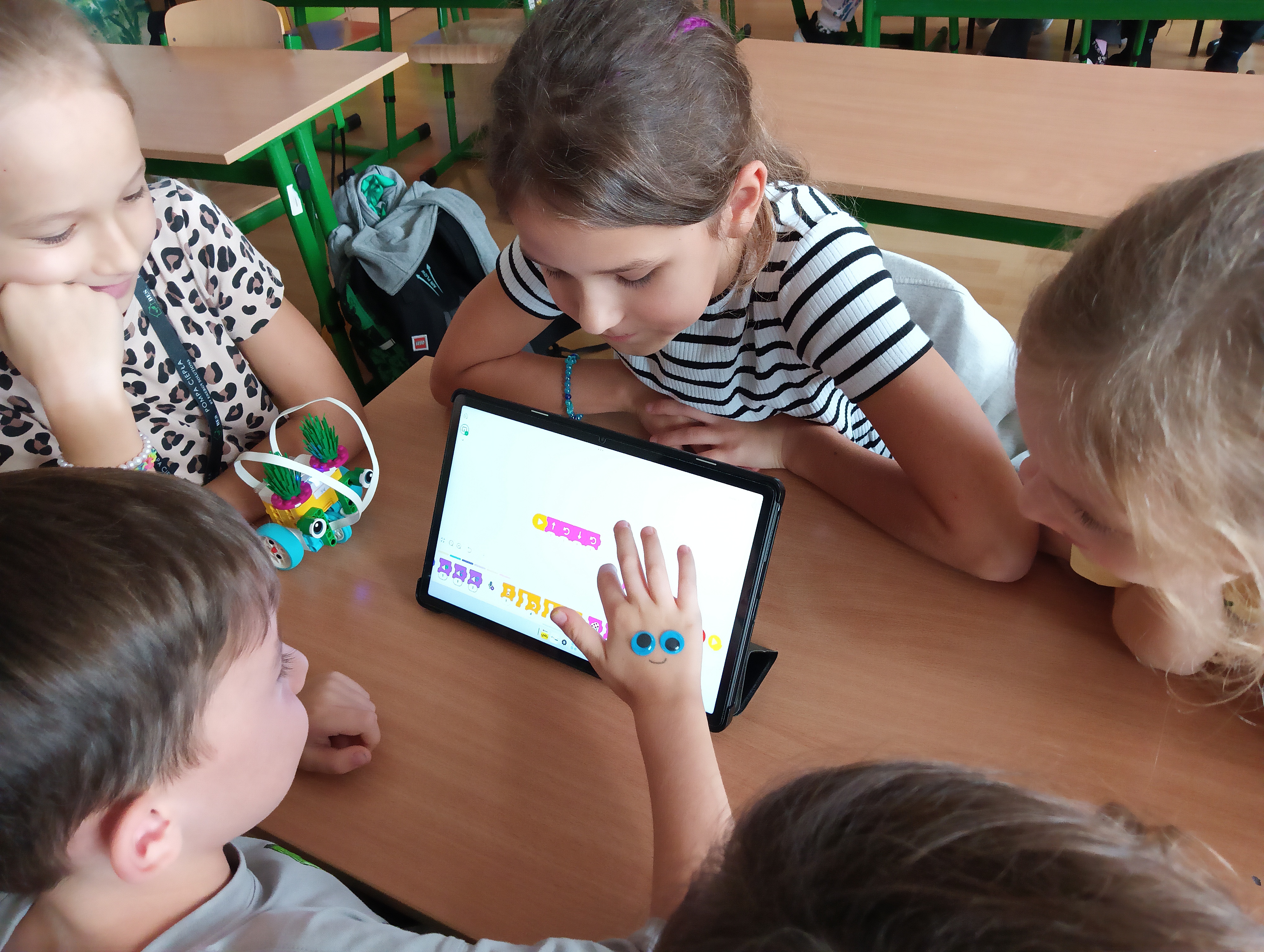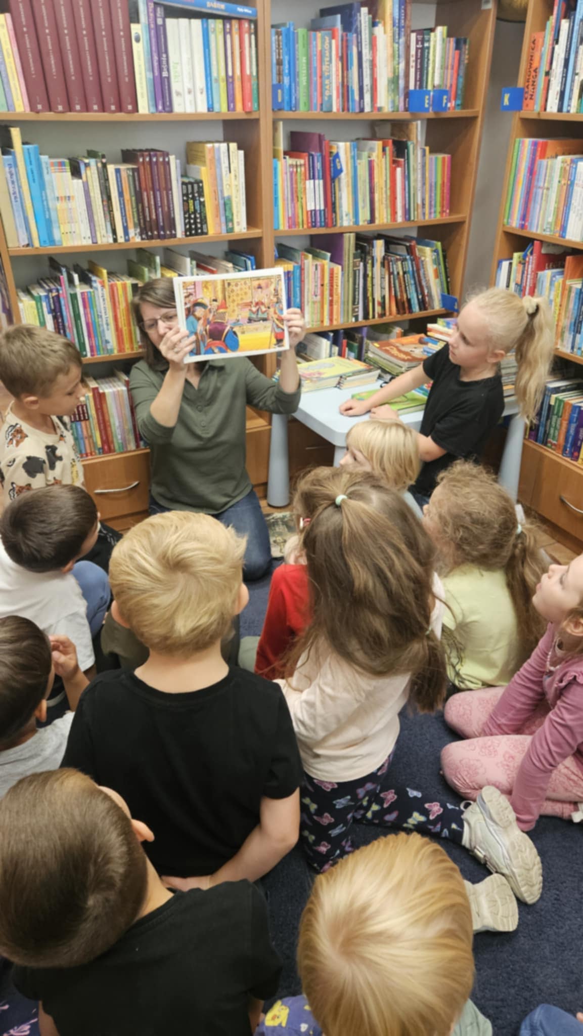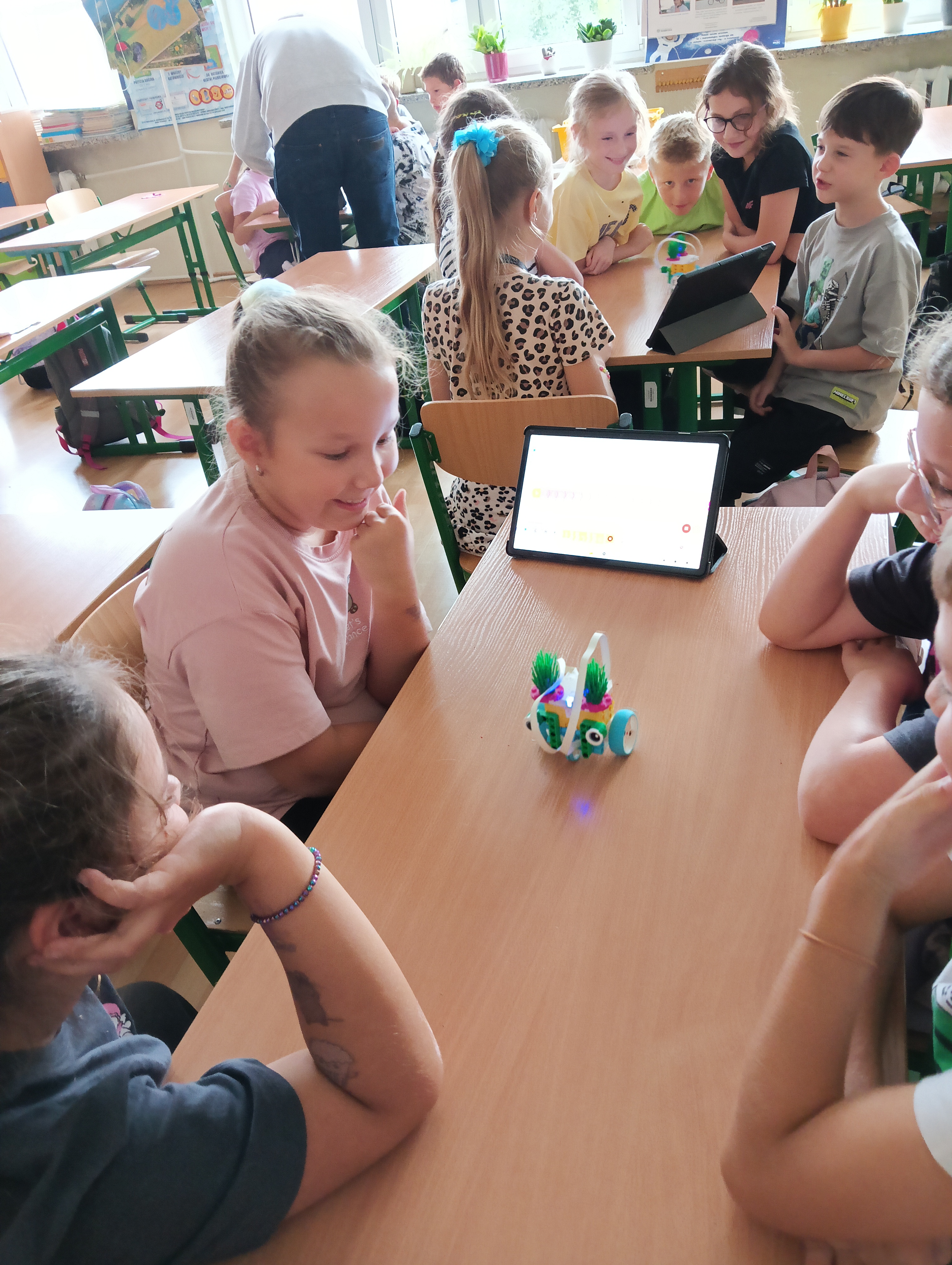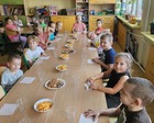 Tego dnia uczniowie zaprezentowali przedstawienie ,,Poplątane bajki”, w którym wystąpiły postacie znane dzieciom z najpopularniejszych baśni, takich jak: ,,Królewna Śnieżka”, ,,Kopciuszek”, czy ,,Czerwony Kapturek”, ale w nieco innej, dość humorystycznej odsłonie. Uczniowie zaprosili również wszystkie dzieci do wspólnej, ruchowej zabawy przy piosenkach bajkowych. Następnie odbył się przegląd piosenek bajkowych, przygotowanych przez wszystkich uczniów z danej klasy lub przez przedstawicieli klas. Mogliśmy usłyszeć: Kacpra Bojarczuka wraz z klasą 0A w piosence ,,Nigdy nie ulegnę, Gabrielę Leonarcik z klasą 0C w piosence ,,Czekam i czekam”, Amelię Kalicką z klasą 1A w piosence ,,Meluzyna”, Maksymiliana Harasima z kl. 1E w piosence ,,Tabaluga”, klasę 2 A w piosence ,,Pół kroku stąd”, Magdalenę Piotrowską z kl. 3C w piosence ,,Na Wyspach Bergamutach”, klasę 3 F w piosence ,,Podróż do Krainy Bajek” Dianę Brzezińską z kl. 1C w piosence ,,Pokemon”, Maję Dymowską w piosence ,,Barbi”, klasę 2B w piosence ,,Gumisie”, Bartłomieja Jarockiego z kl. 3A w piosence ,,Kaczka Dziwaczka”, Polę Majchrowską z kl. 3G w piosence ,,Chwytam wiatr”, Zofię Sadowską z kl. 3H w piosence ,,Pół kroku stąd” oraz Jakuba Wiercińskiego z klasy 3E w piosence ,,Pół kroku stąd”. Niektórzy wykonawcy przygotowali również ciekawą choreografię i oryginalny kostium. Wszystkim uczestnikom pani dyrektor Katarzyna Sierpotowska wręczyła pamiątkowe dyplomy.